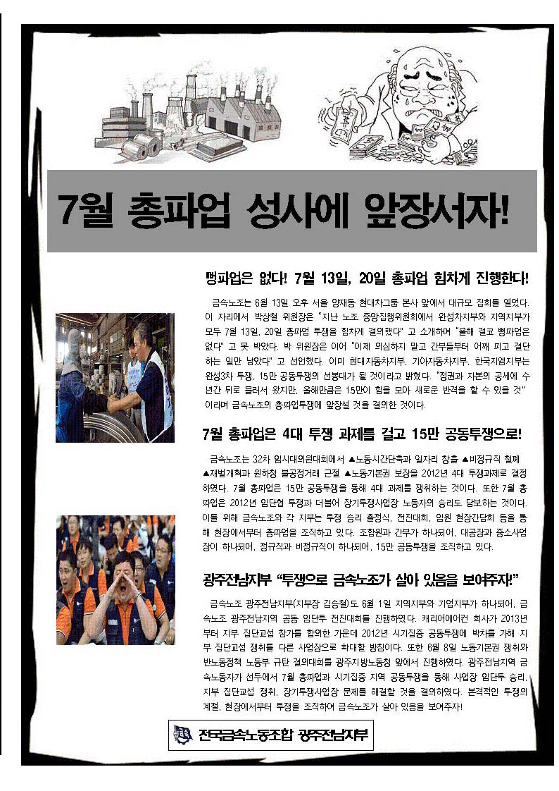 <금속광전> 7월 총파업 성사에 앞장서자!