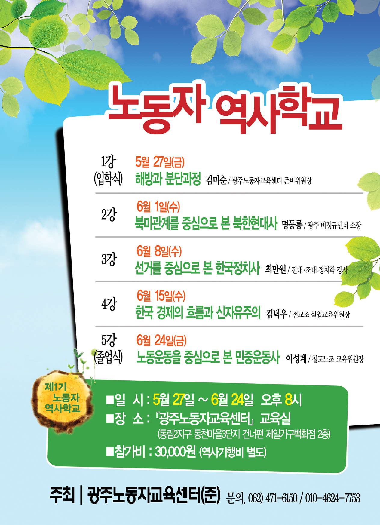 1기 노동자 역사학교 개강 안내(광주노동자교육센터)