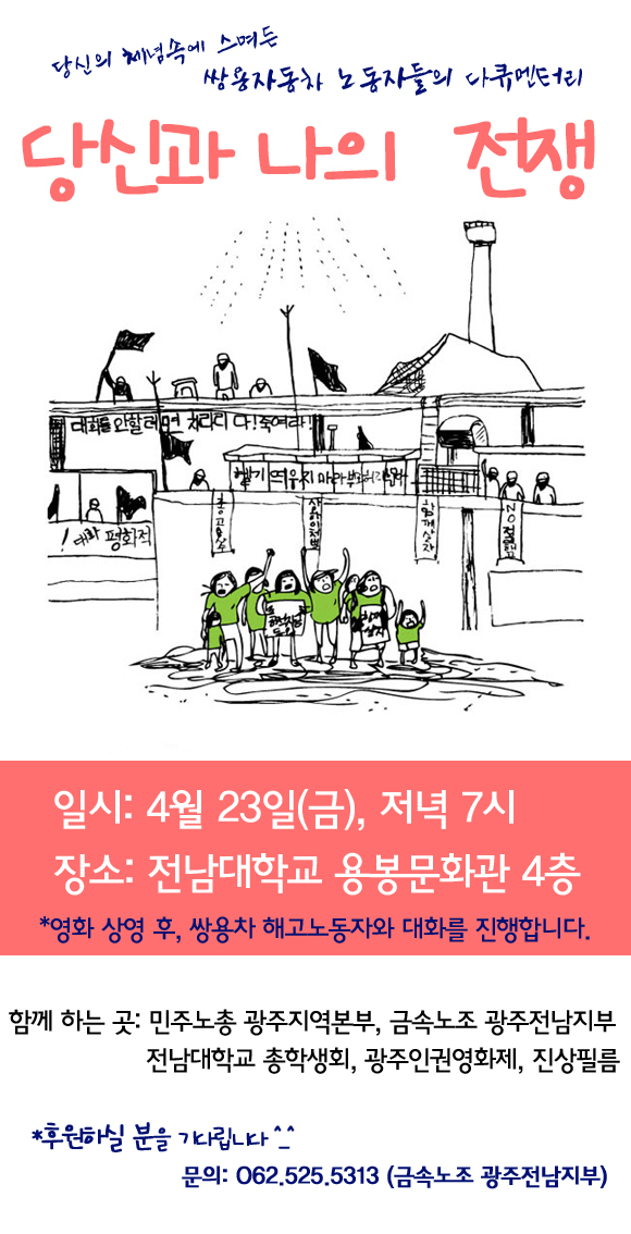 <당신과 나의 전쟁> '4/23 7시, 전남대 용봉문화관'에서~