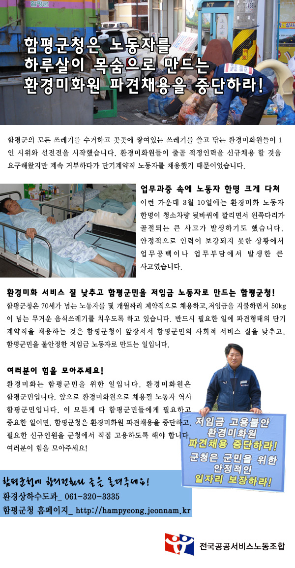 함평군청은 환경미화원 파견채용을 중단하라!