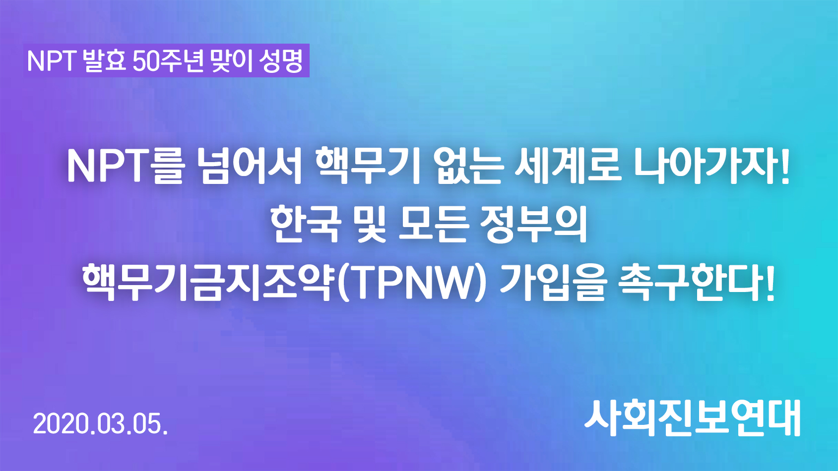 성명NPT를 넘어서 핵무기 없는 세계로 나아가자! 한국 및 모든 정부의 핵무기금지조약 가입을 촉구한다!