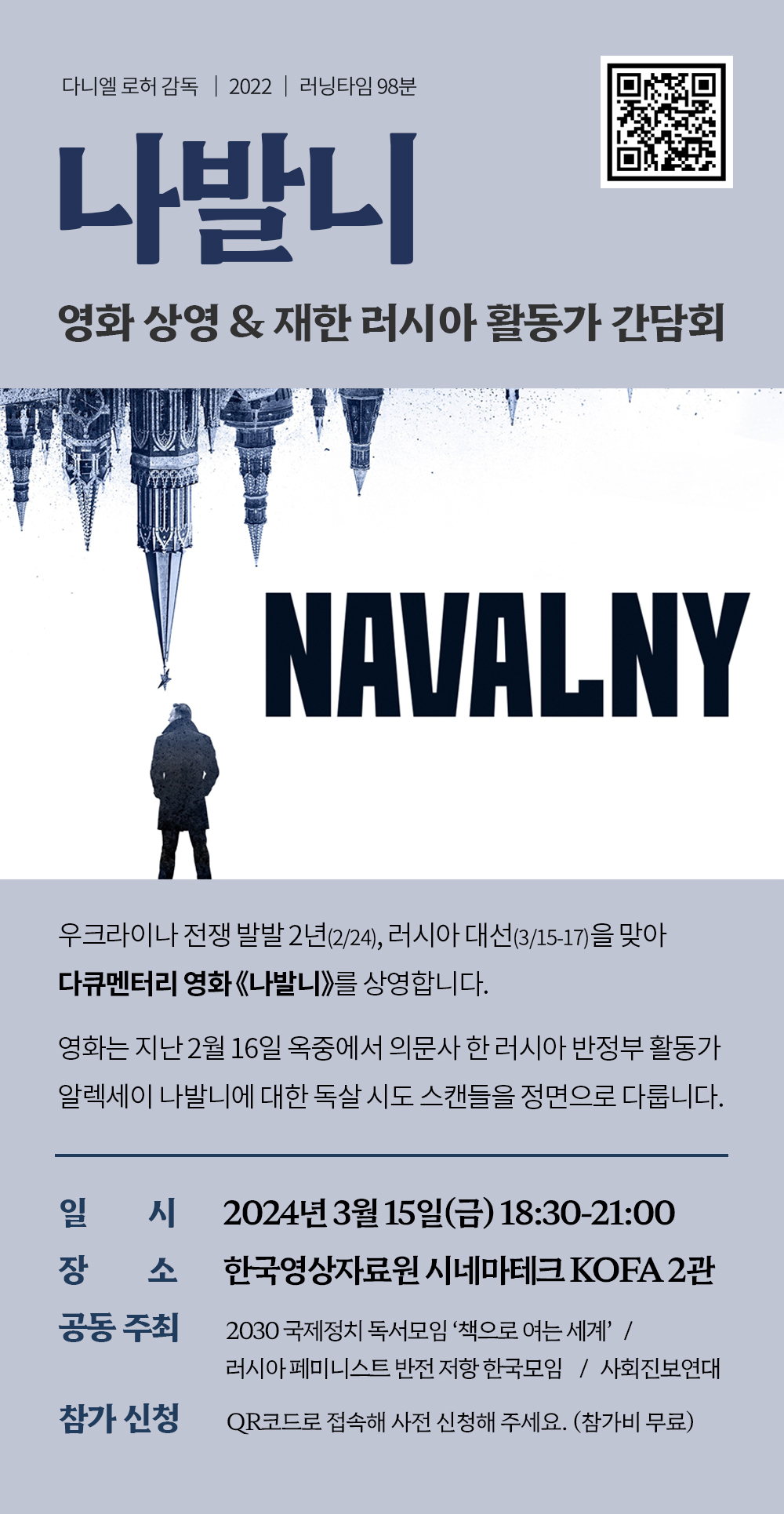 공지3/15(금) '나발니' 영화 상영 & 러시아 활동가 간담회