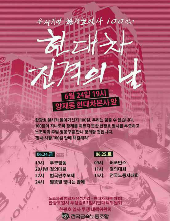 | 739 | 공지유성기업 한광호열사 100일 현대차 진격의 날 | 유성범대위 | 2016.06.18 | 31819 |