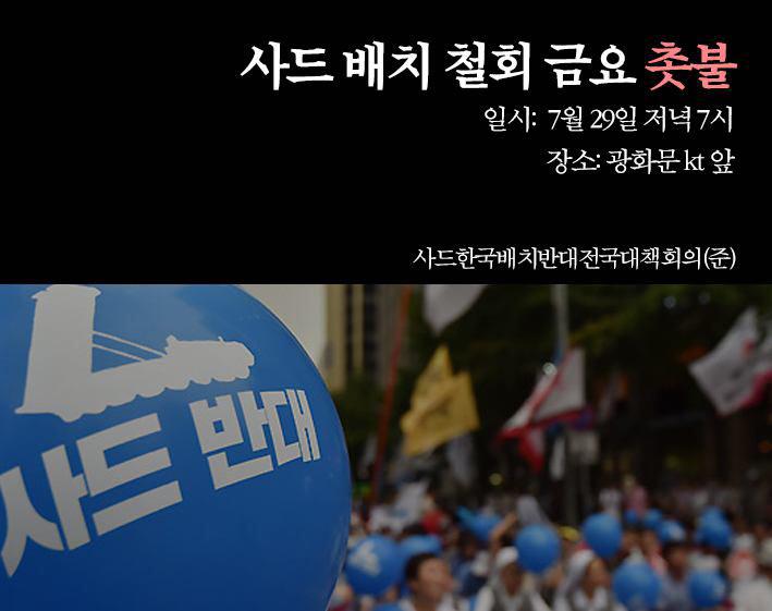 | 770 | 공지7.29 사드배치 철회 촛불집회 | 사드전국대책회의 | 2016.07.28 | 28751 |