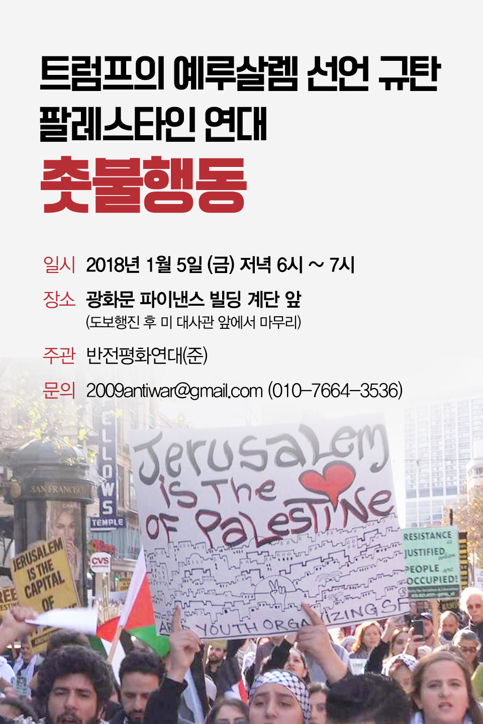 ‘트럼프의 예루살렘 선언 규탄· 팔레스타인 연대 촛불행동’