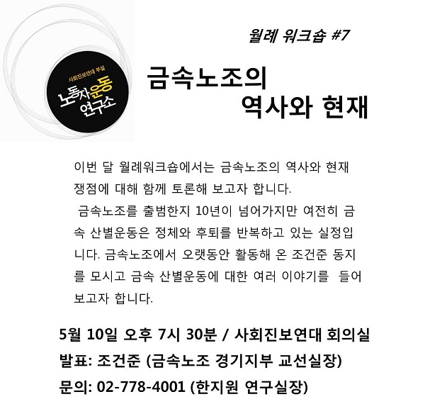 5월 10일 오후 7시 30분 / 사회진보연대 회의실