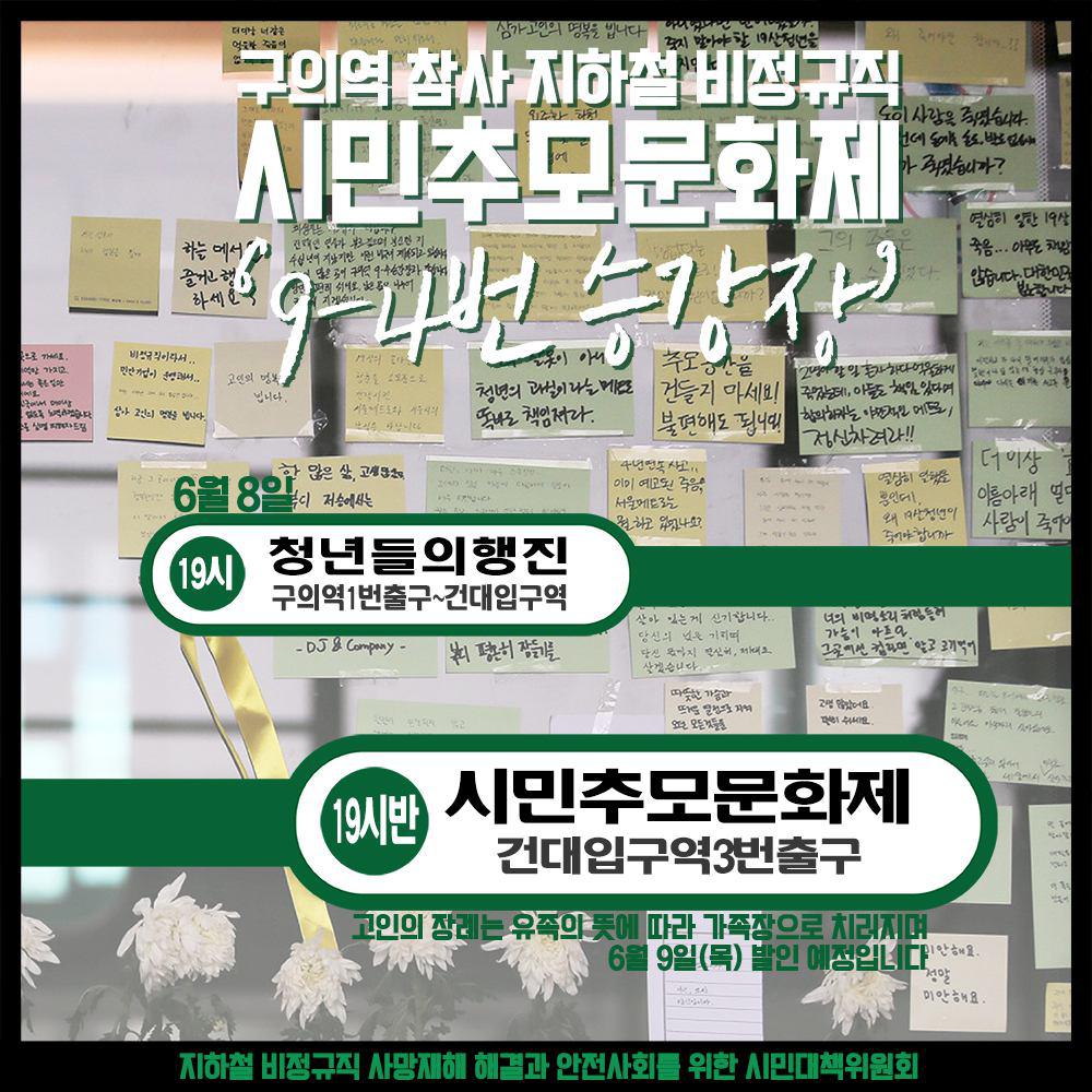 | 733 | 공지구의역 참사 지하철 비정규직 '시민추모문화제' | 사회진보연대 | 2016.06.08 | 29443 |