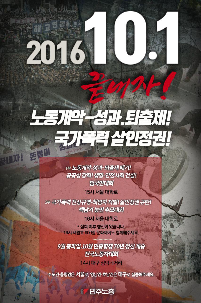| 808 | 공지10.1 범국민대회, 백남기농민추모대회, 세월호900일집회 | 사회진보연대 | 2016.09.28 | 31633 |