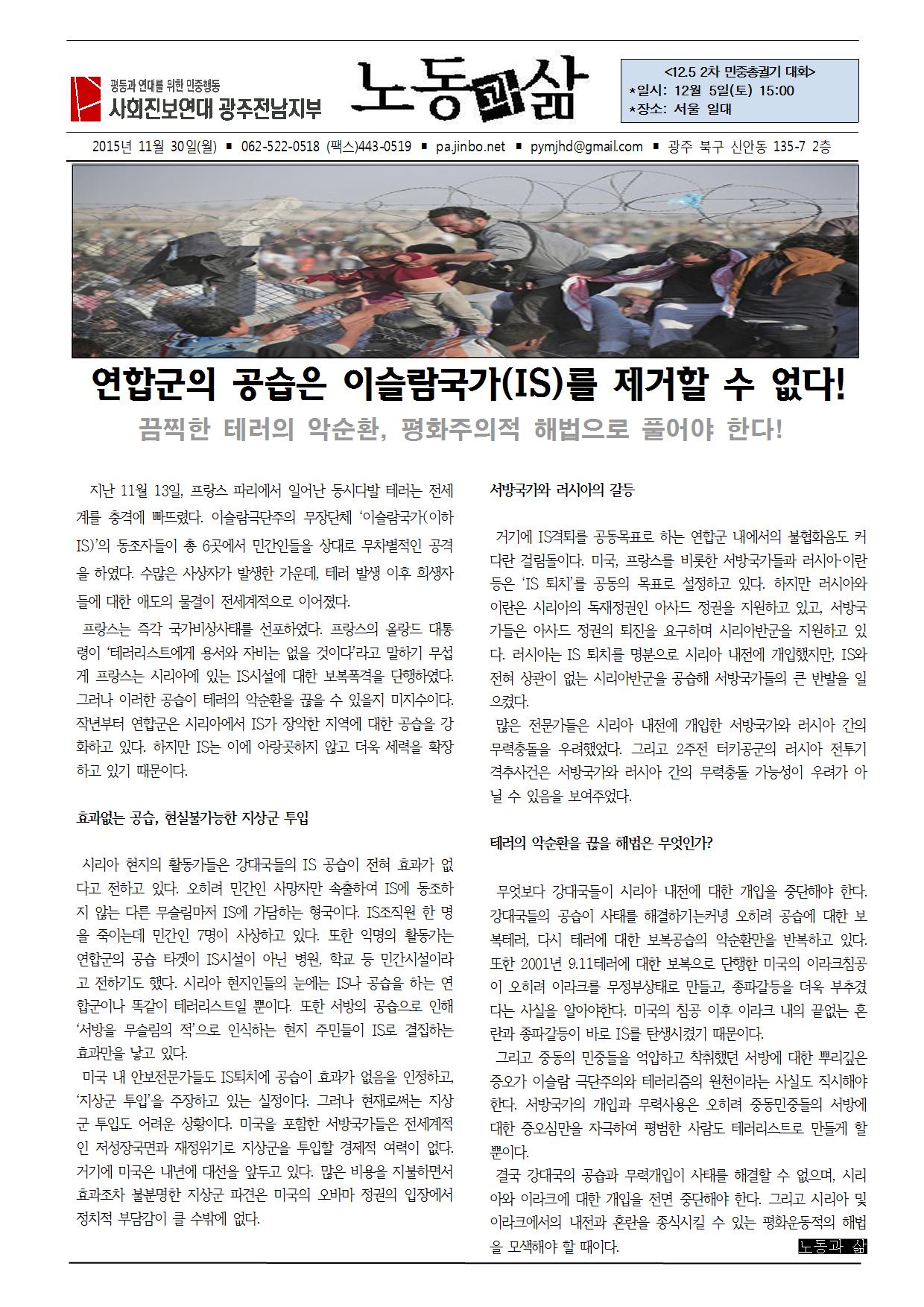 "연합군의 공습은 이슬람국가(IS)를 제거할 수 없다!"(11/30)