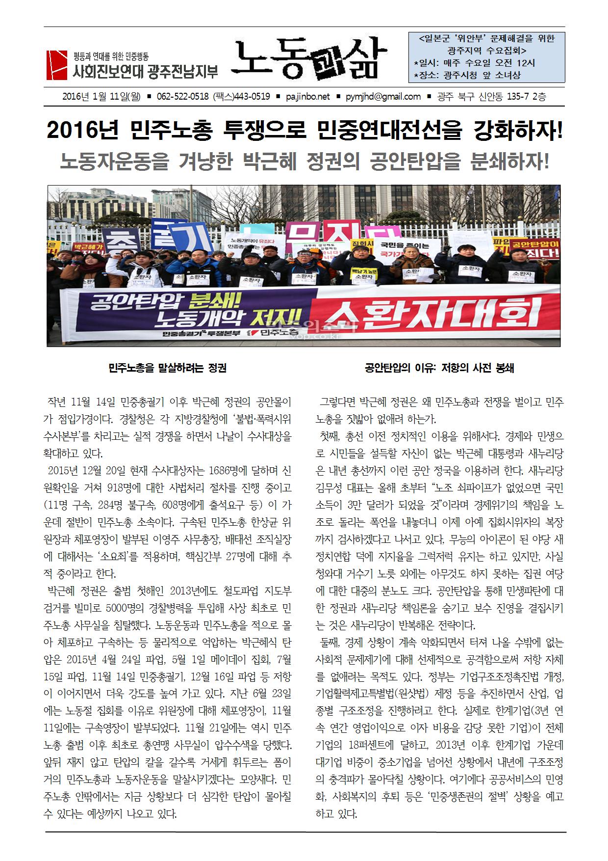 "2016년 민주노총 투쟁으로 민중연대전선을 강화하자!"(1/11)