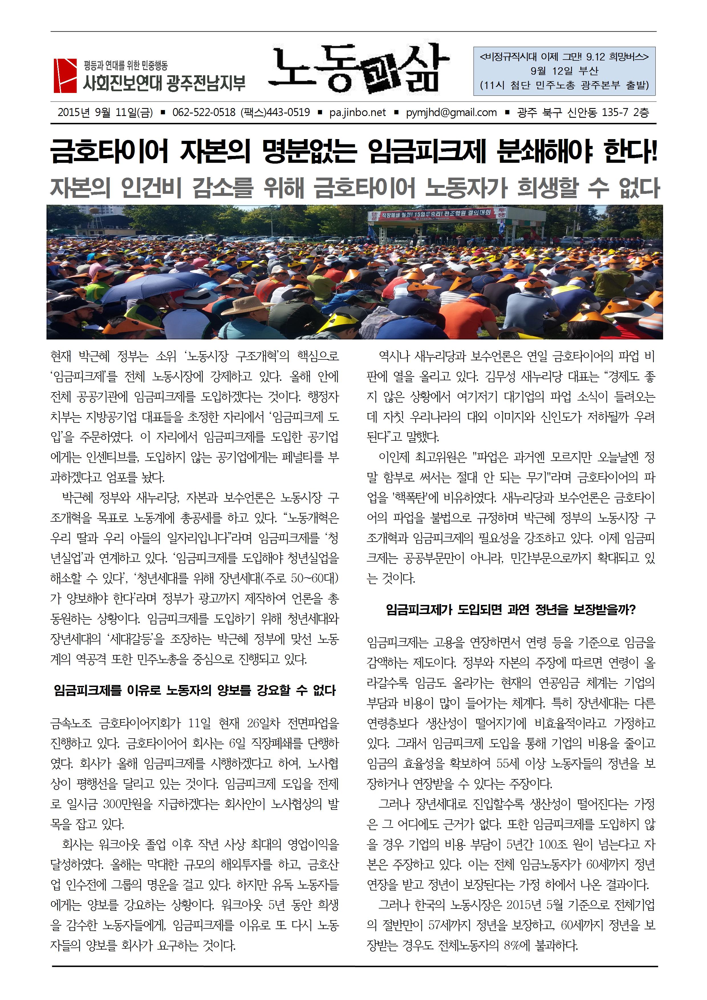 "금호타이어 자본의 명분없는 임금피크제 분쇄해야 한다!"(9/11)