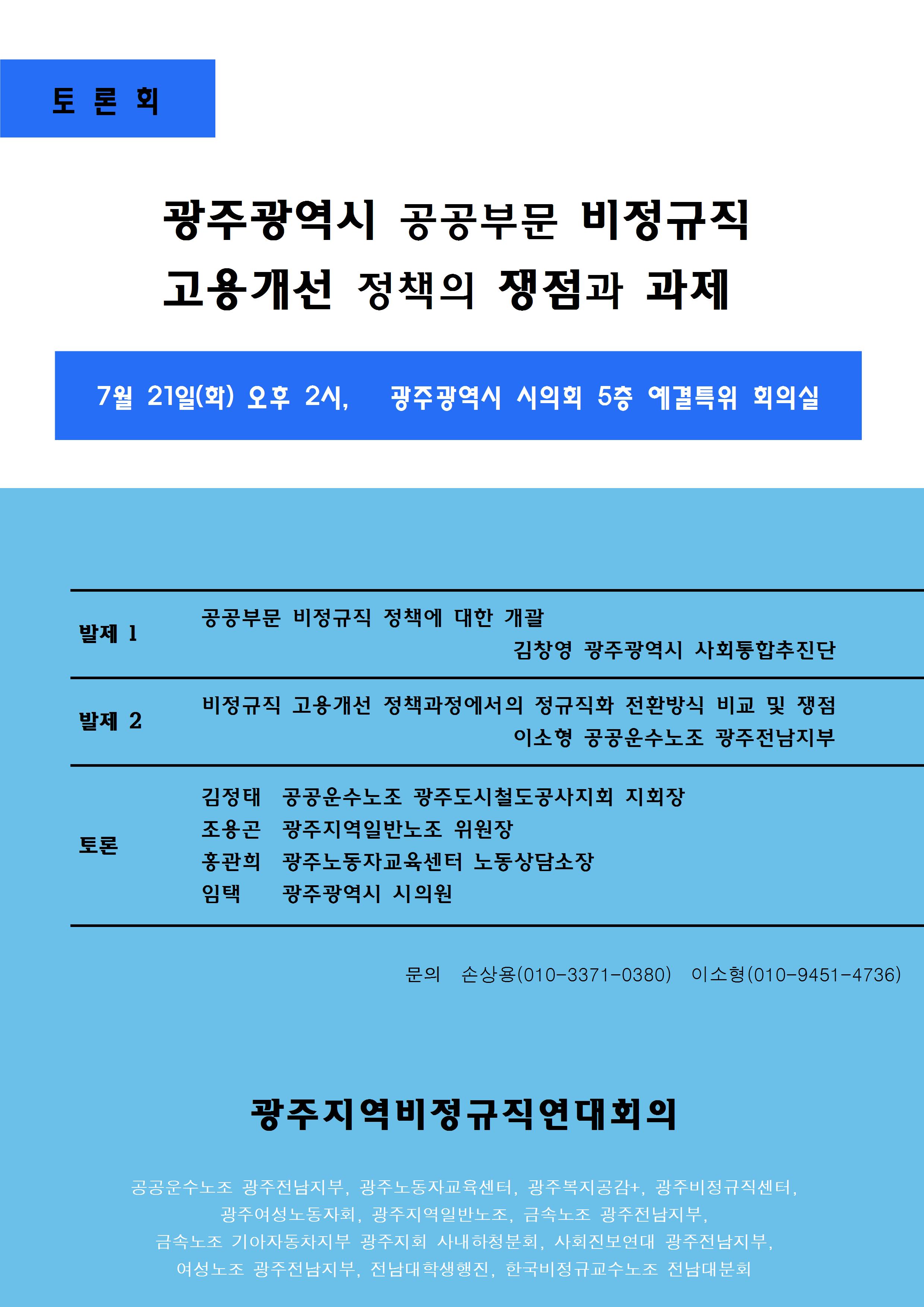 <토론회> 광주광역시 공공부문 비정규직 고용개선 정책의 쟁점과 과제