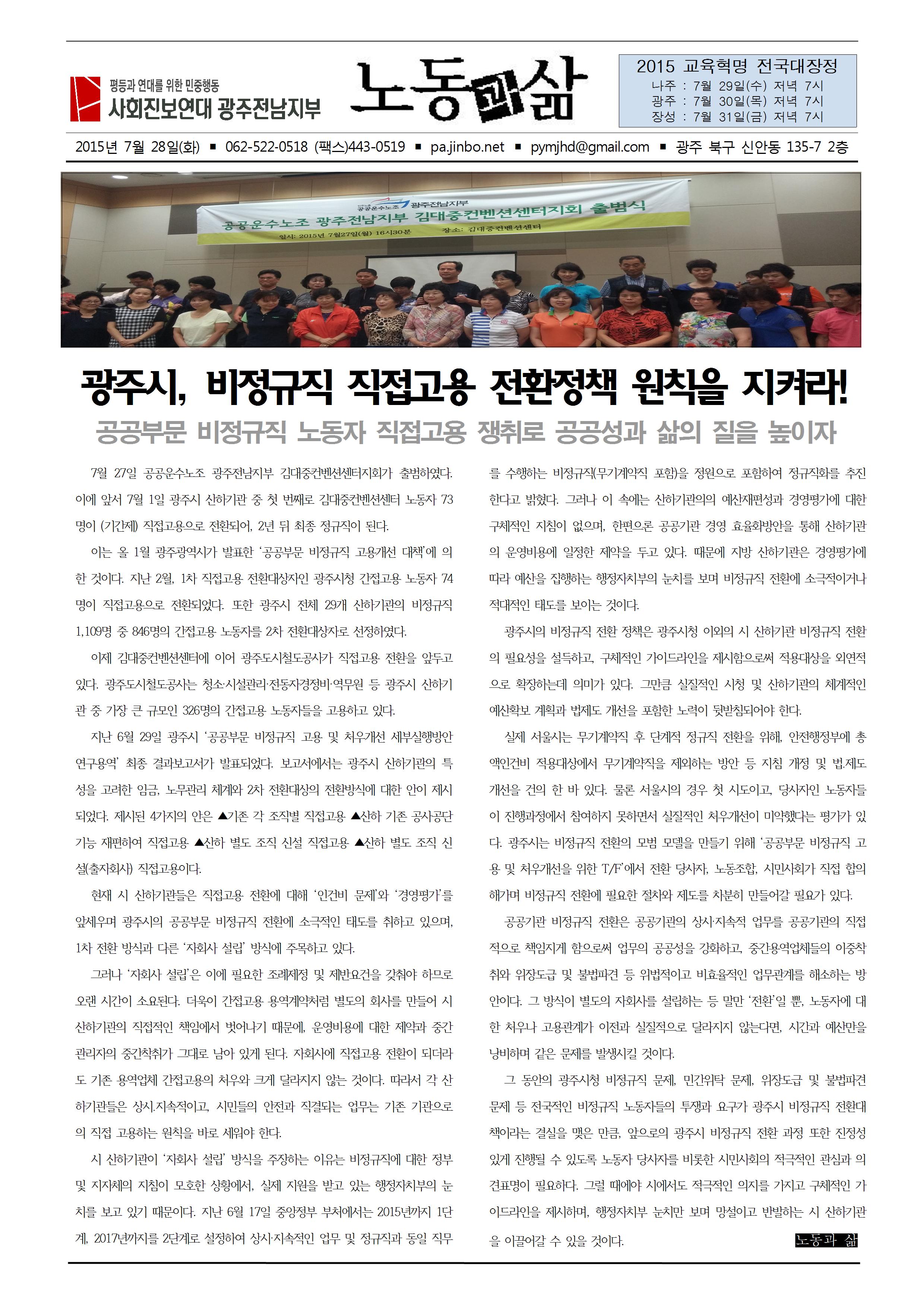 "광주시, 비정규직 직접고용 전환정책 원칙을 지켜라!"(7/28)