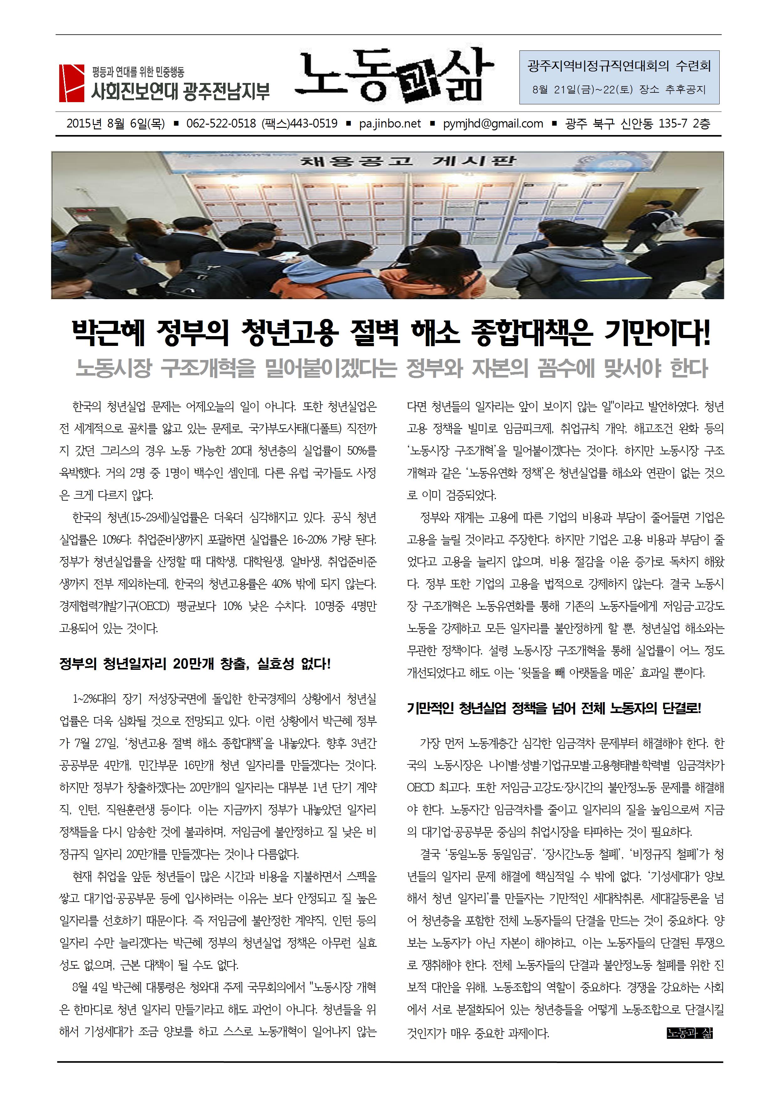 "박근혜 정부의 청년고용 절벽 해소 종합대책은 기만이다!"(8/6)