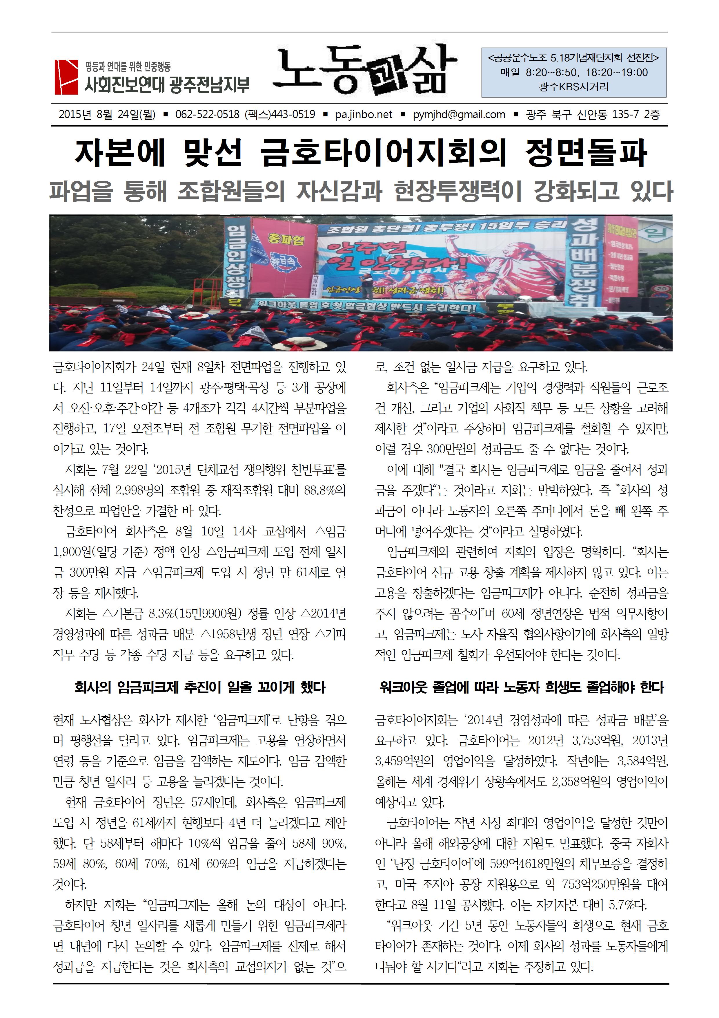 "자본에 맞선 금호타이어지회의 정면돌파"(8/24)