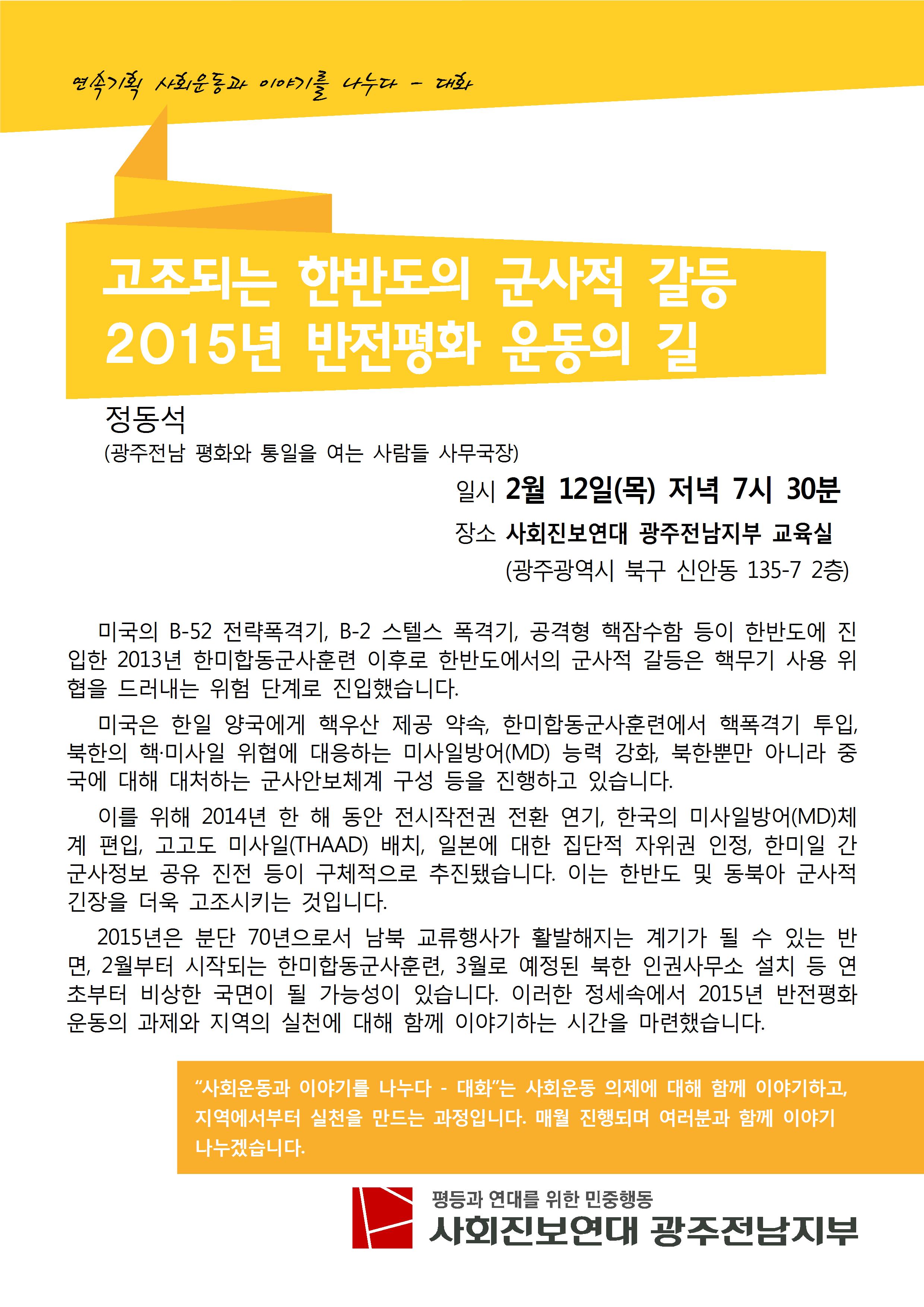 [2/12 대화] 고조되는 한반도의 군사적 갈등, 2015년 반전평화 운동의 길