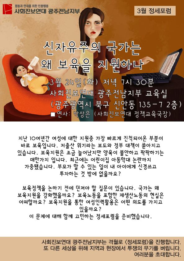 [3/24 정세포럼] 신자유주의 국가는 왜 보육을 지원하나