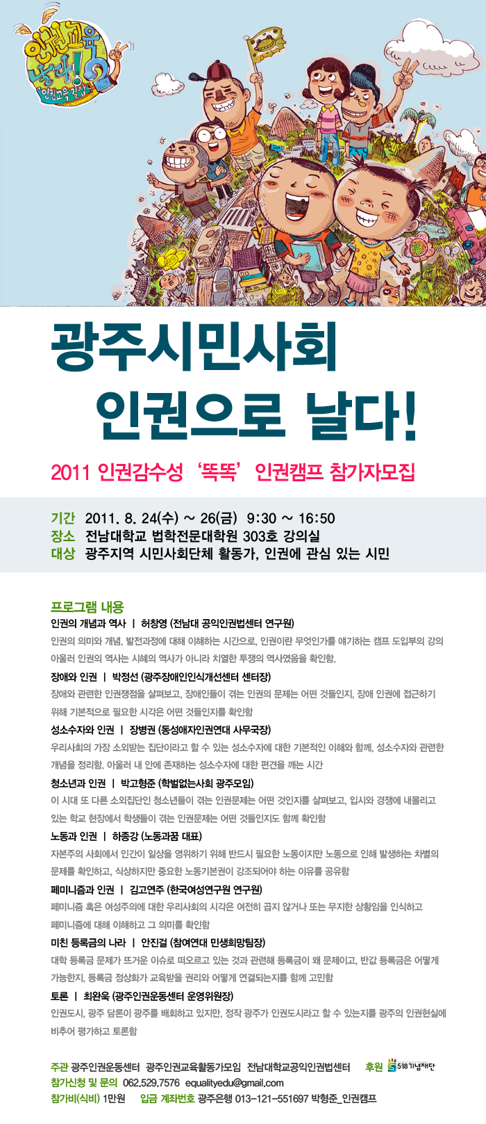 광주시민사회 인권으로 날다! 2011 인권감수성‘똑똑’인권캠프 참가자모집