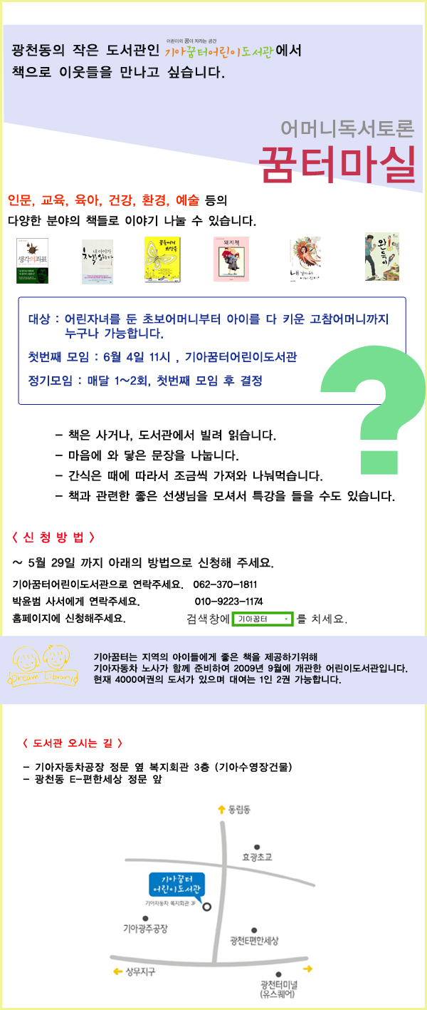 어머니독서토론모임 모집안내 - 기아꿈터어린이도서관