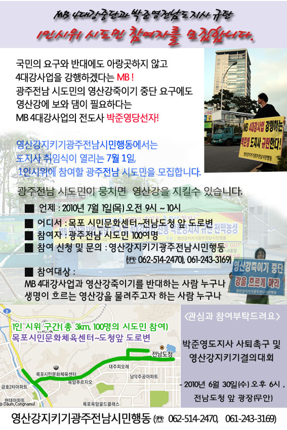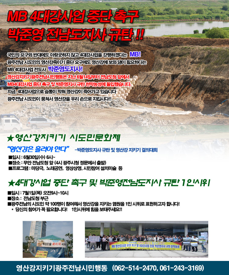 박준영도지사 규탄 영산강지키기에 함께 해주세요!