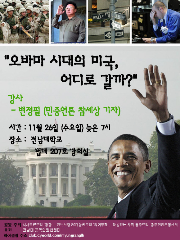 [11.26(수)늦은7시 전대 법대 207호] "오바마 시대의 미국, 어디로 갈까?"
