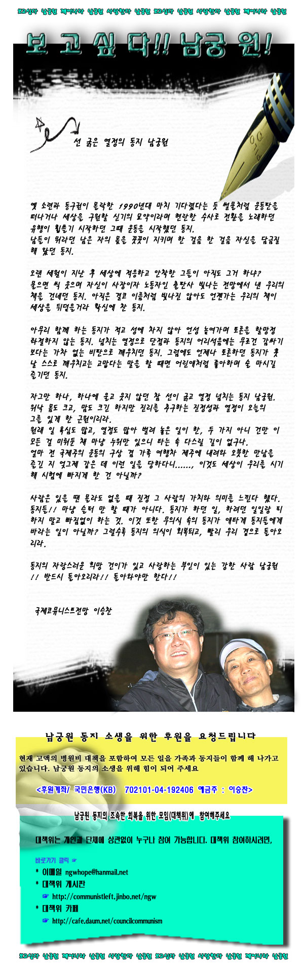 국제코뮤니스트전망 토론회 안내와 남궁원동지 회복기원 편지 2