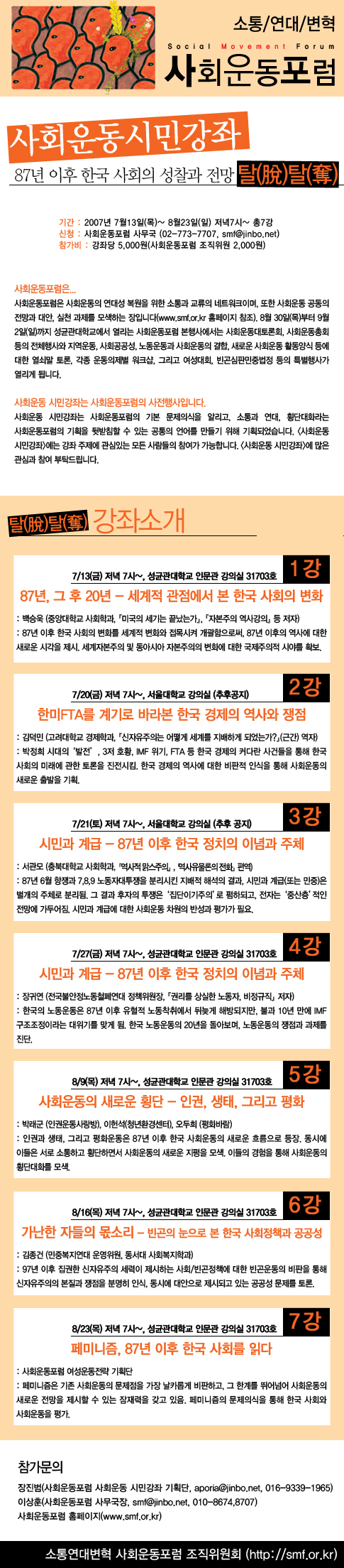 | 1190 | [smf]시민강좌 웹자보 최신 수정 버전 다시 | 사회운동포럼 | 2007.07.08 | 43645 |