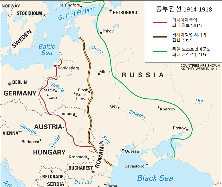 [그림 4] 10월 혁명부터 1918년 여름 내전 발발까지 소비에트 정부가 통치한 영역
