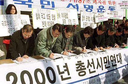낙천운동, 선거법개정, 병무비리 조사 등 새해 벽두부터 시작된 정치개혁 바람은 잦아들 줄 모르고 있다. 시민선거혁명이라 불린 낙천운동을 시발로 진행된 일련의 정치개혁바람은, '정치는 꼴도 보기 싫다'는 식의 정치적 무관심과는 다른 국민적 반향을 일으키고 있다. 이에 호응이나 하듯 정치권은 벌써부터 개혁 바람을 대비해 온 듯한 인상이다. DJ정권은 지난 해부터 'α+1'로 제기한 신당창당 구도를 통해, 386세대의 젊은피와 개혁적이고 참신한 인사들 영입으로 새천년 민주당을 탄생시켰다. 한나라당이나 자민련도 사정은 마찬가지여서 정도의 차이는 있지만 개혁인사를 대거 영입하거나 영입을 공표하고 나섰다. 바야흐로 물갈이를 통한 정치개혁은 초읽기에 돌입한 듯 하다.