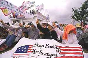 최근 들어 '반미자주화' 투쟁이 다시 힘을 얻고 있다. SOFA개정투쟁이 광범한 지지를 얻고 있는가 하면, 매향리 미군사격장반대투쟁은 공중파에 1시간짜리 르포로 보도되기도 했다. 또한 녹색연합이 폭로한 용산 미군기지 포름알데히드 방류사건은 미군 당국의 사과 거부로 국민적인 분노를 불러일으켰다. 그 동안 한총련 학생들의 철없는 구호로만 여겨져왔던 '주한미군철수' 요구는 이제 전혀 그렇게 다가오지 않는다. 과연 지금 한반도에는 '반제국주의 직접투쟁'의 르네상스가 도래하고 있는 것인가?