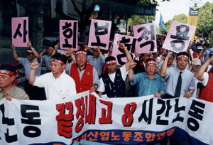 그런데 우리 사회는 어떠한가? 일방적 경제성장 논리 속에서 산업재해 왕국, 최장 노동시간 등의 기록을 갖고 있다. 의료보험이니 산재보험이니 고용보험이니 하는 것들이 마련되었다고 떠들면서도, 노동자들의 삶은 변화하지 않았다. 이 제도들은 보호해야 할 부분은 보호하지 않으면서 철저하게 사회적 분배 원칙과는 무관하게 설계되어 있다.