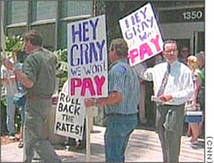 에디슨 인터내셔널(Edison International)과 SCE 자회사는 채권자에게 5억 9,600만달러의 채무를 이행하지 못하였으며, PG&E는 2월 중에 10억달러의 채무를 갚아야 하는 실정이다. 이러한 상황에서, 다른 주의 전력회사들이 이들에게 전력공급을 중지하자, 급기야 단전사태로까지 이르게 되었던 것이다.