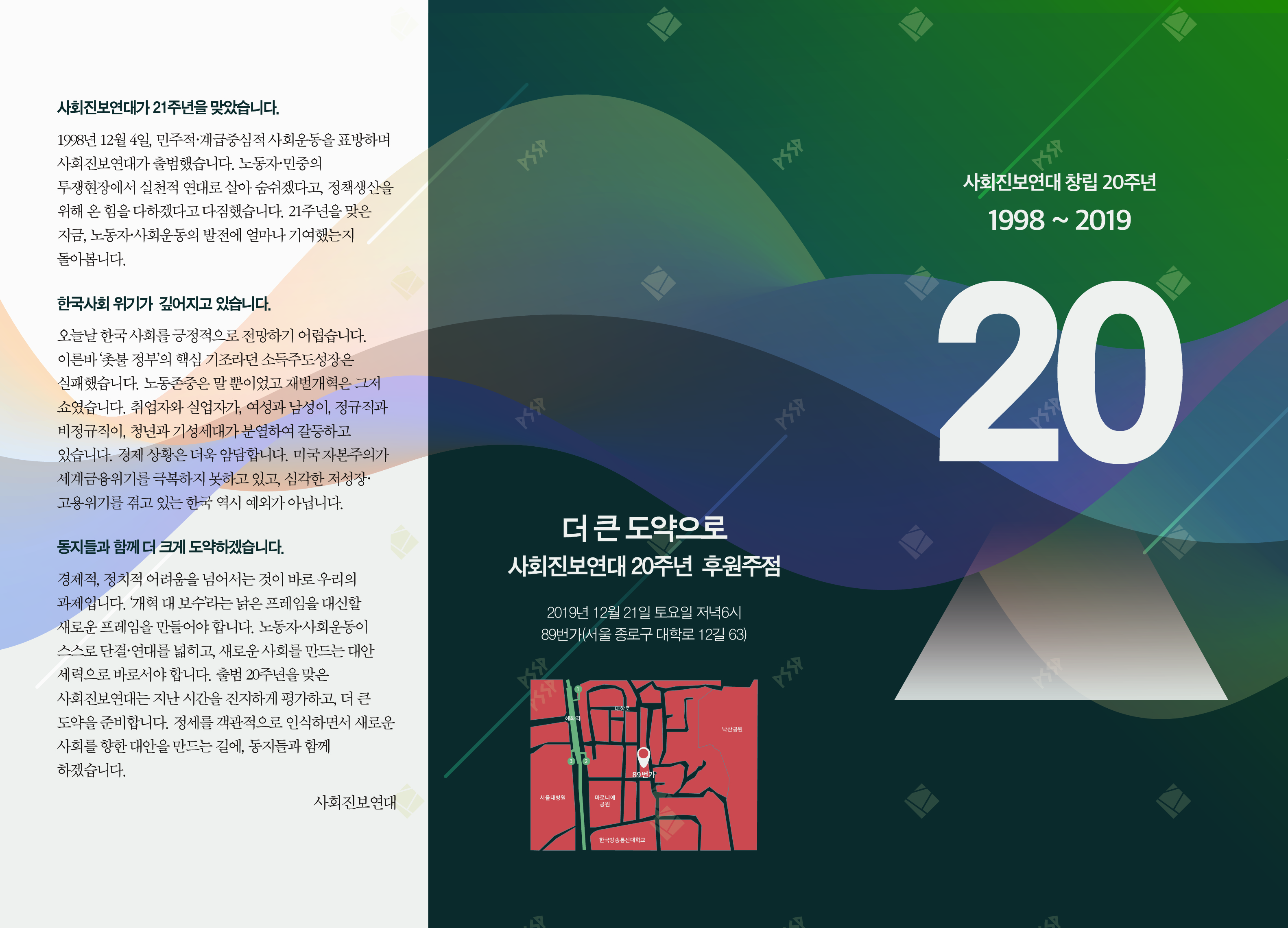 공지사회진보연대 창립 20주년(1998~2019) 행사안내