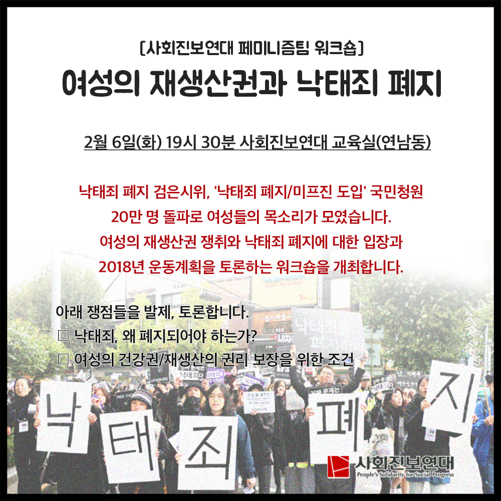 공지[페미니즘팀 워크숍] 2/6 여성의 재생산권과 낙태죄 폐지