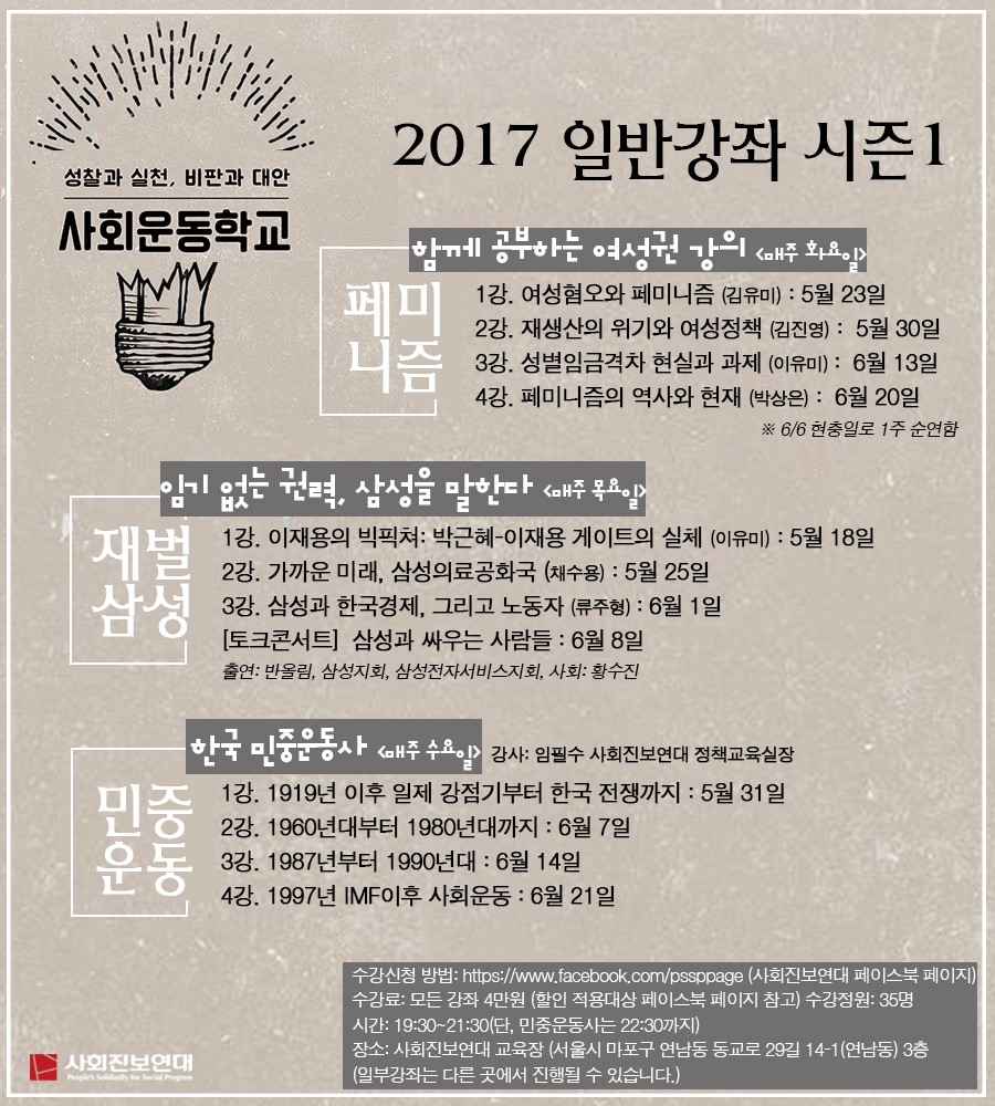 공지성찰과 실천, 비판과 대안 사회운동학교 <2017 일반강좌 시즌 1>을 소개합니다!