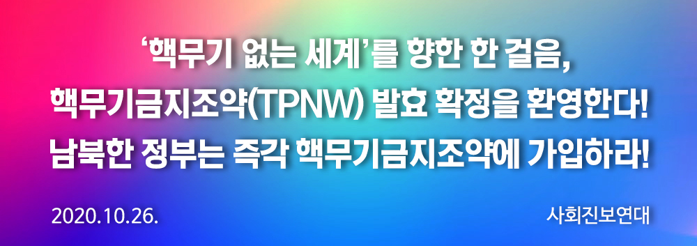 성명핵무기금지조약(TPNW) 발효 확정을 환영한다! 남북한 정부는 즉각 핵무기금지조약에 가입하라!