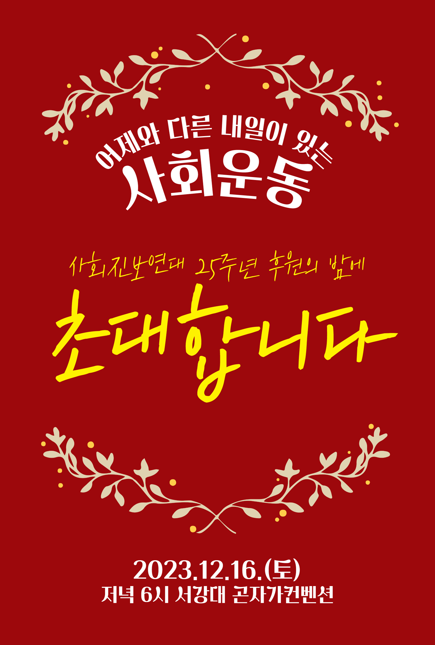 공지12/16 사회진보연대 25주년 후원의 밤 ✨어제와 다른, 내일이 있는 사회운동✨
