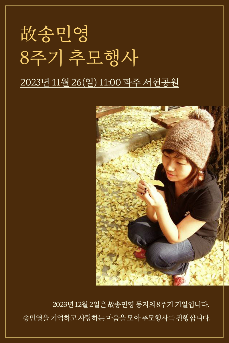공지故송민영 8주기 추모행사 안내