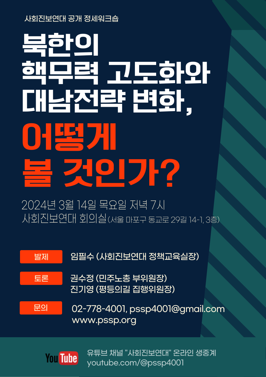 공지[공개 정세워크숍] 북한의 핵무력 고도화와 대남전략 변화, 어떻게 볼 것인가?