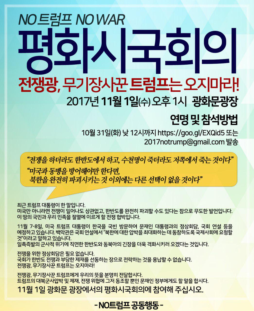 공지NO TRUMP NO WAR 평화시국회의