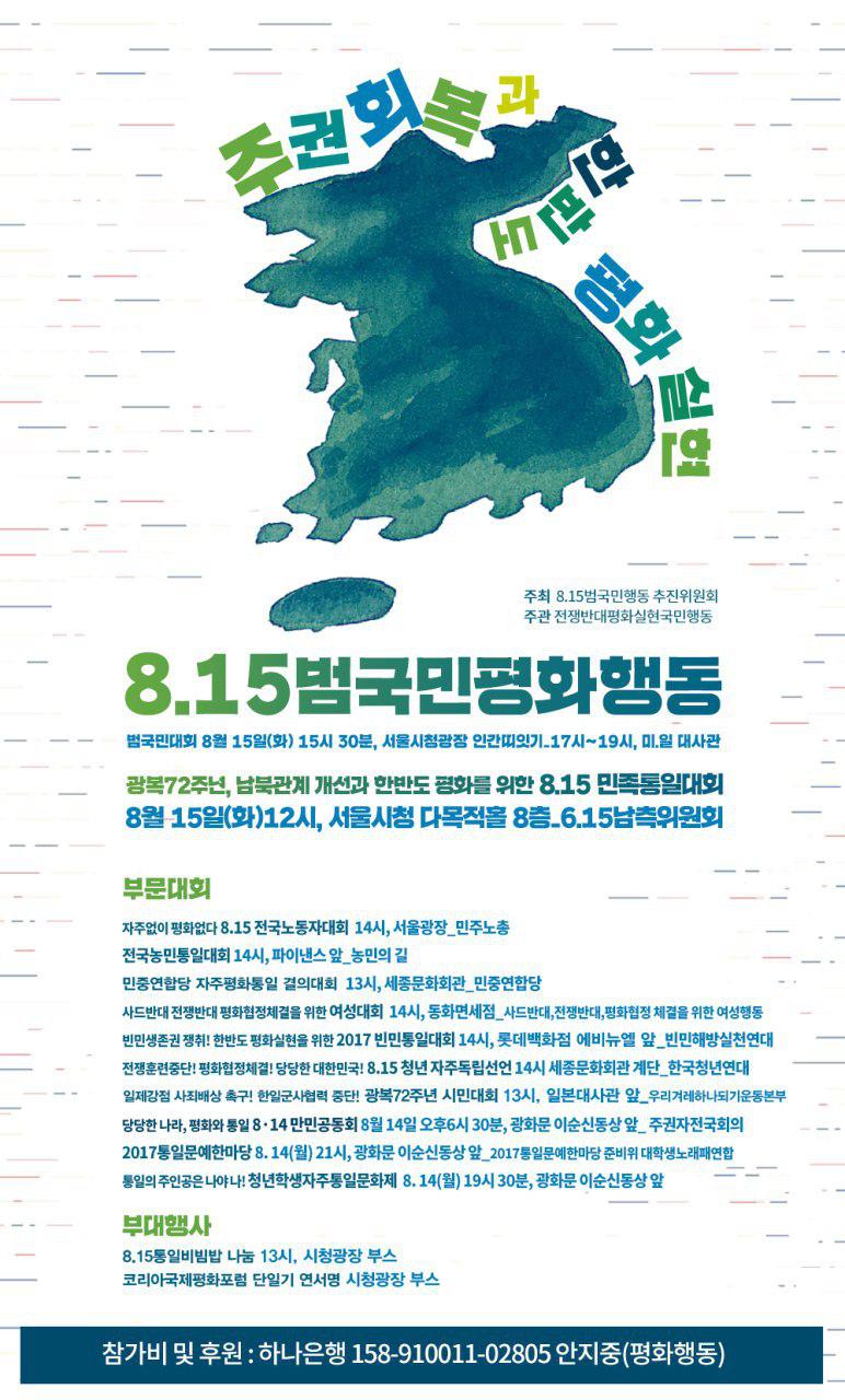 공지8.15 범국민평화행동 안내