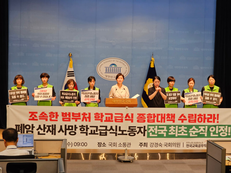 2024년 폐암으로 사망한 故 이영미 공공운수노조 교육공무직본부 조합원이 순직을 인정받았다. 학교급식실이 산업적 위험이 존재하는 노동 현장임을 국가가 인정한 것이다. (사진 출처: 공공운수노조)