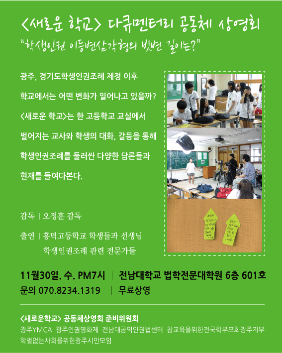 <새로운학교 다큐멘터리> 광주지역 공동체 상영회 / 11월30일저녁7시, 전남대 법학전문대학원 601호