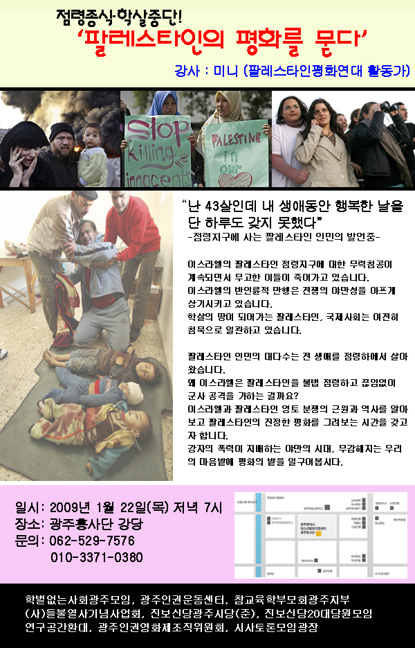 [강연회:1/22(목) 7시] '팔레스타인의 평화를 묻다'