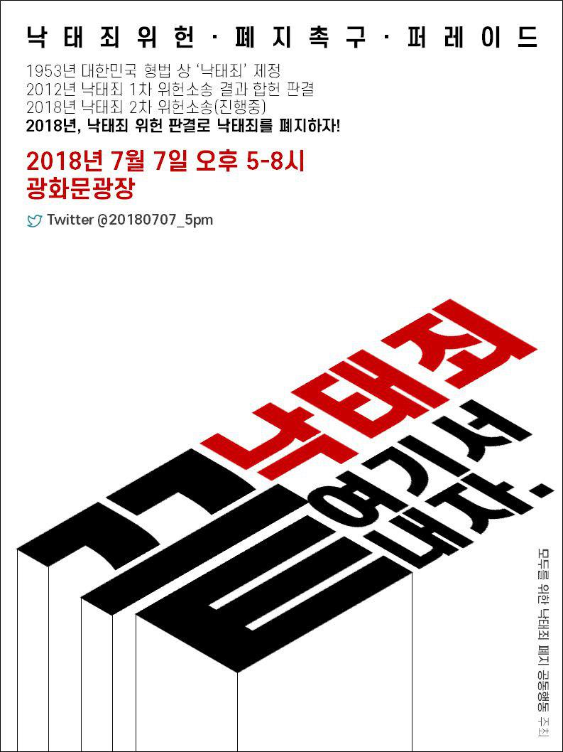 공지낙태죄 폐지!위헌판결 촉구! 전국집중행동 일정안내