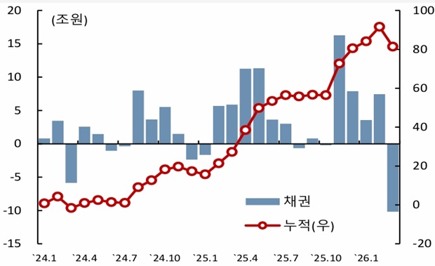 [도표 12] 외국인의 국내 채권 순매수 추이 (2024.1. ~ 2026.3.)