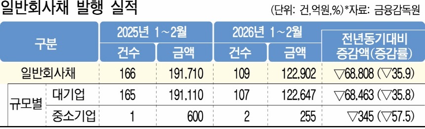 [도표 3] 2025년과 2026년 1~2월 회사채 발행액 비교
