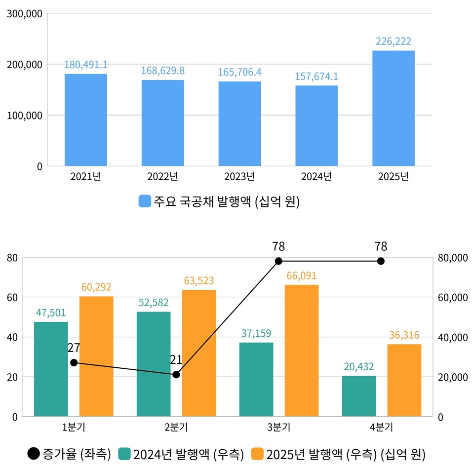 [도표 5] 최근 5년의 주요 국공채 발행액(위)과