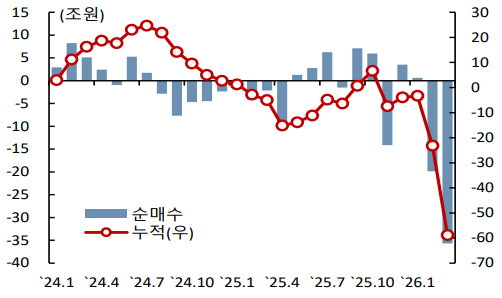 [도표 6] 외국인의 국내 주식 순매수 추이 (2024.1. ~ 2026.3.)