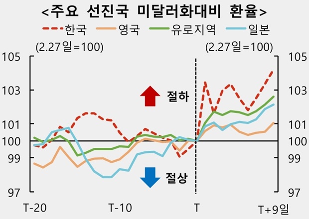 [도표 9] 주요 선진국 미 달러화 대비 환율 (T=2월 27일)